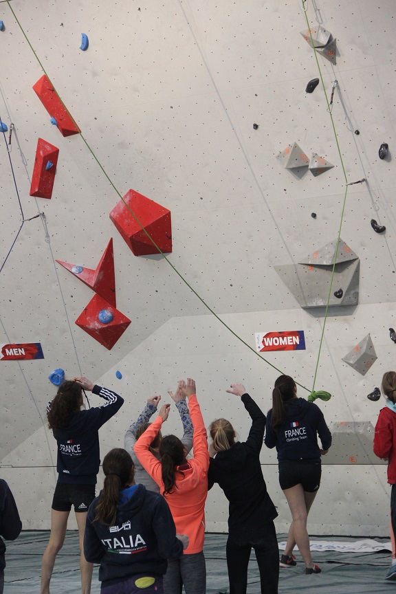 Sacensības tika atklātas ar ātrumkāpšanu jau 8.00 no rīta un bija zināms, ka šī Latvijas izlasei būs grūtākā disciplīna, jo praktizēties un atstrādāt kustības šai disciplīnai Baltijā nav iespējams. Izlases treneris Kaspars Vilks iepriekšējās dienās lika uzsvaru uz veiklības un sprinta vingrinājumiem, lai sagatavotos sacensību formātam. Ja salīdzina meiteņu rezultātus no Insbrukas Pasaules čempionāta, tad uzlabojumi bija par 3 sekundēm, bet lai skrietu Top kāpēju līmenī ir jāskrien vēl ātrāk. Pēc meiteņu ātrumkāpšanas startiem vadībā izvirzījās Polijas dalībniece Natalia Kalucka.
