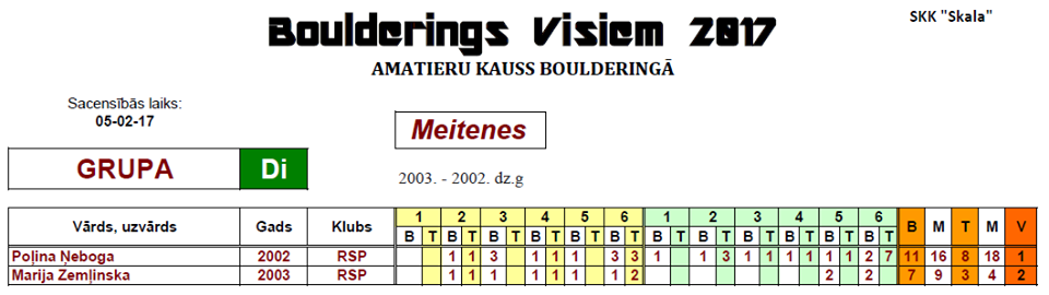 | Rīgas Jaunatnes meistarsacīkstes grūtajā kāpšanā ar augšējo drošināšanu Latvijas Jaunatnes Kauss 3.posms |
